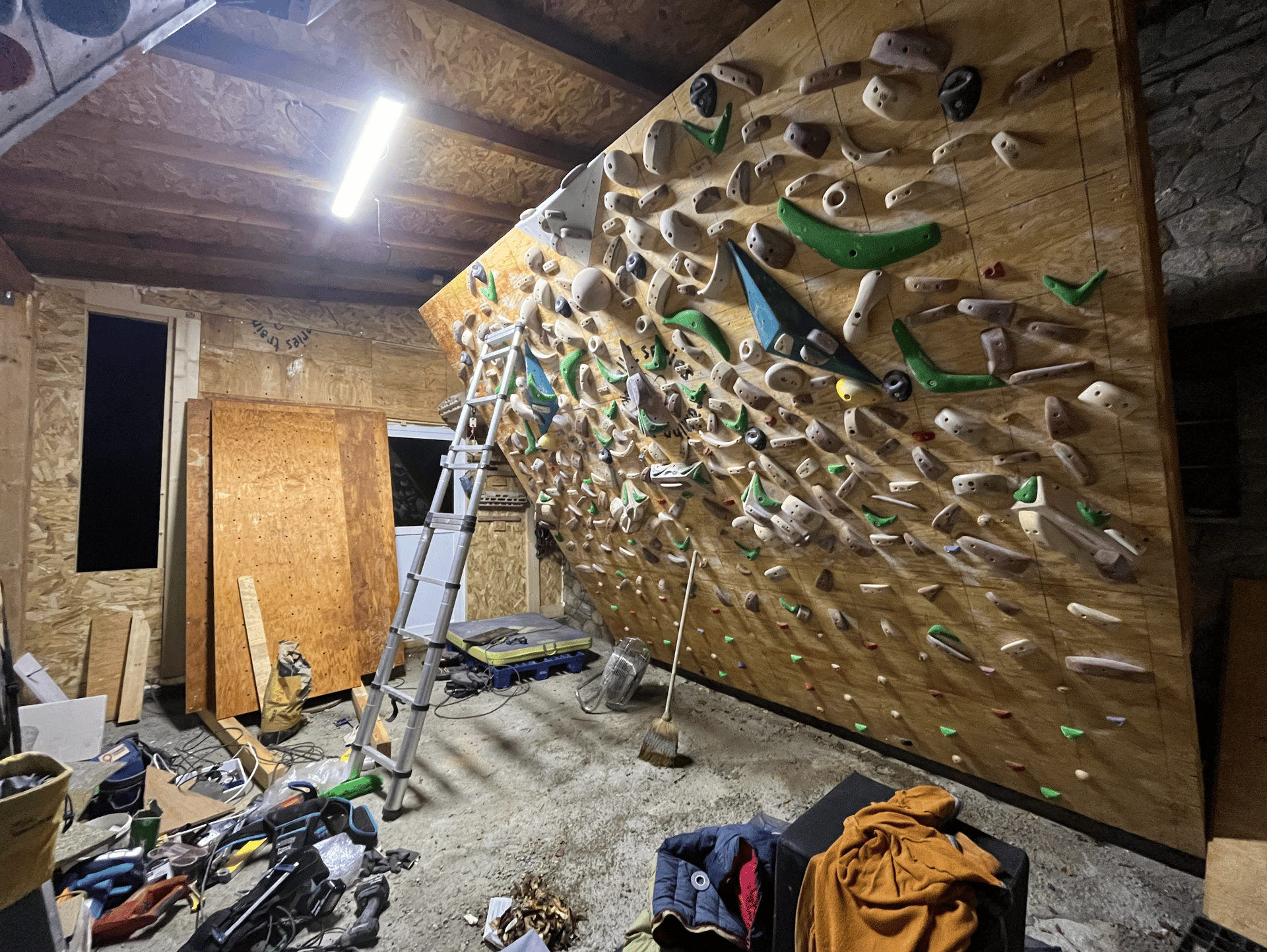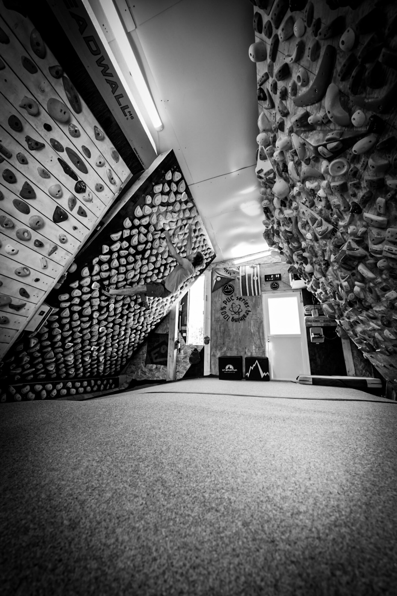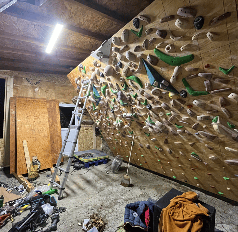 Finalmente, llegamos al PUCtraining Lab, el proyecto más ambicioso hasta ahora. Construido desde cero y con un enfoque en la calidad, este espacio ha sido creado por mí, lo que lo hace extremadamente especial. A lo largo de largos días de carpintería, diseño y trabajo duro, he logrado incorporar las mejores herramientas y equipamiento que un laboratorio de entrenamiento puede ofrecer. La particularidad de este lugar radica en su tamaño íntimo, que fomenta un ambiente de concentración y camaradería entre escaladores. Además, cuenta con impresionantes vistas al “Contrafort del Rombau”, uno de los sectores más reconocidos del mundo para escalar.