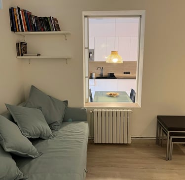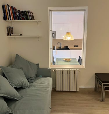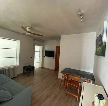 🛋️ Salón-Comedor: Zona de estar con sofá y TV, y mesa para 4 personas.